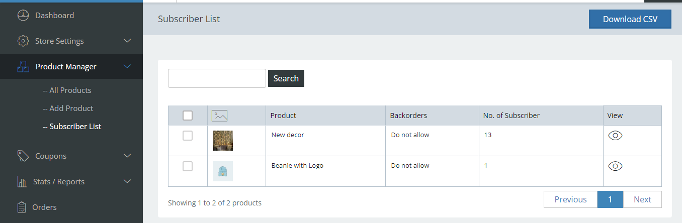 Note – For a multivendor site, the vendors of the site can also see the subscriber list for the out of stock product of his store from their vendor dashboard and also view the list of subscribers.